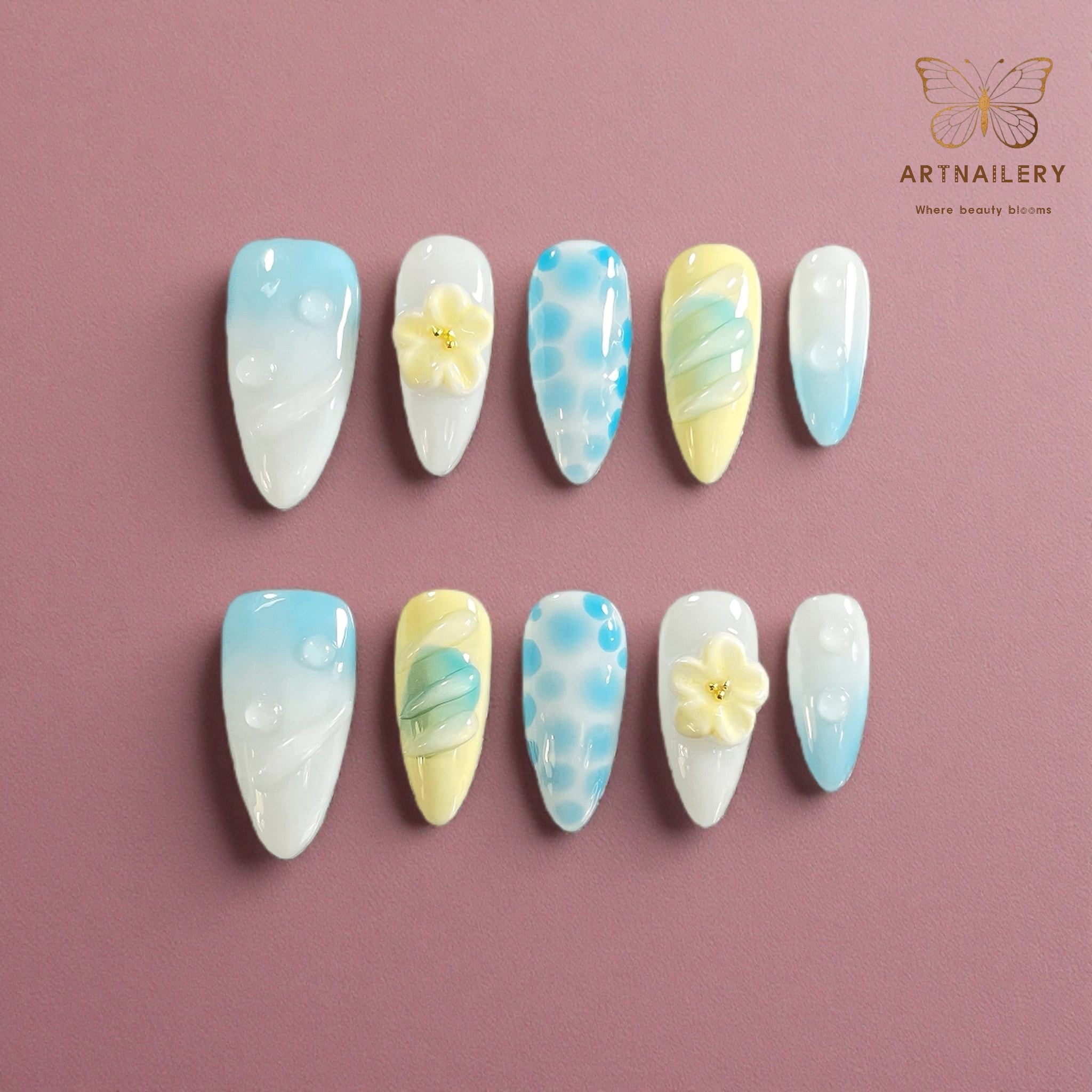 Artnailery · Azure Bloom | Everyday & Seasonal Glam Limited (10 pcs Handmade Press-On Nails)
