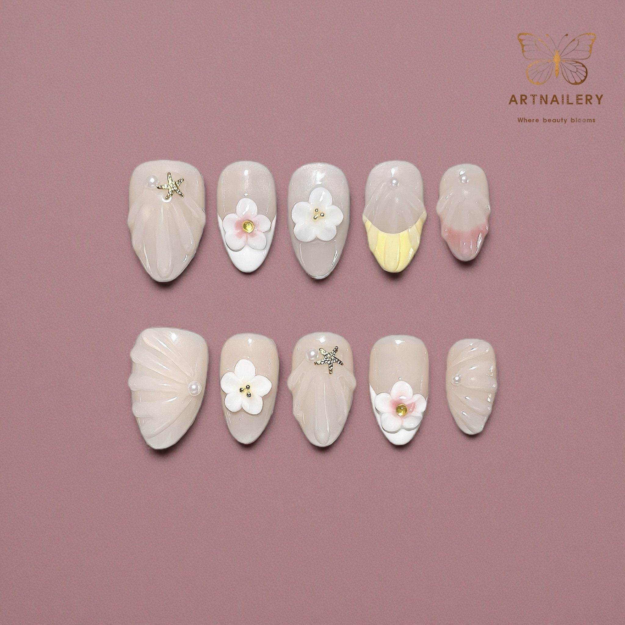 Artnailery · Blossom Shore | Everyday & Seasonal Collection (10 pcs Handmade Press-On Nails)