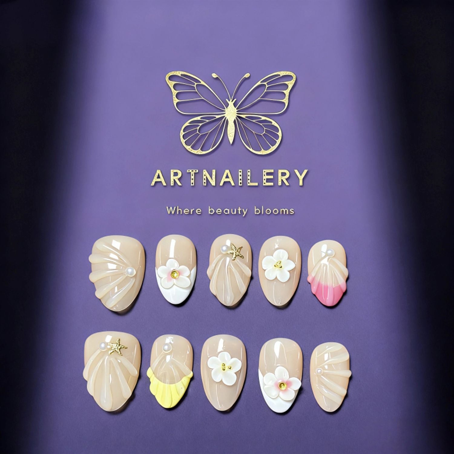 Artnailery · Blossom Shore | Everyday & Seasonal Collection (10 pcs Handmade Press-On Nails)