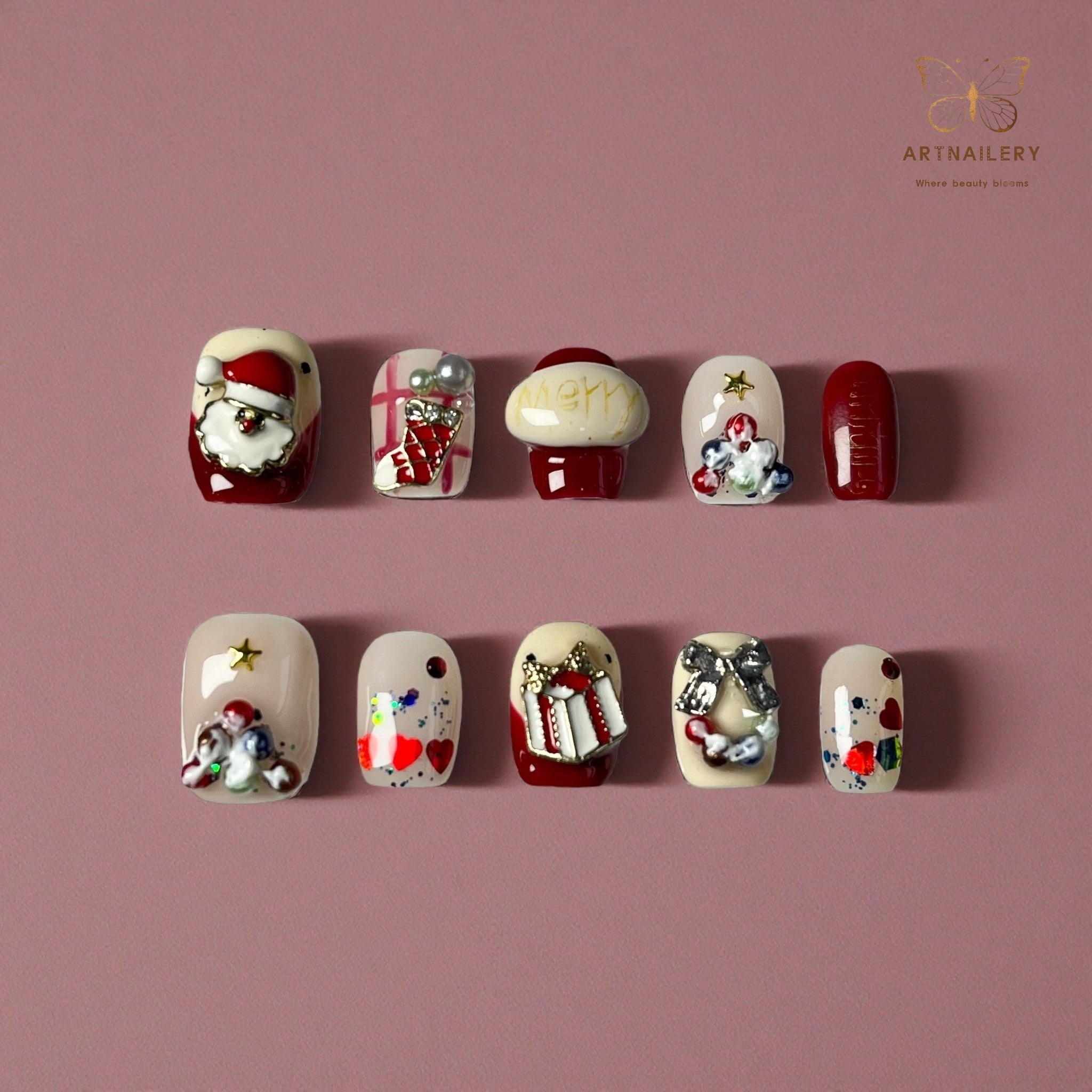 Artnailery · Candy Ribbon | Holiday Glam Limited (10 pcs Handmade Press-On Nails) ⸻ Description 🎄 Sweet, bold, and unmistakably festive. Candy Ribbon is a 10-piece handmade press-on nail set...