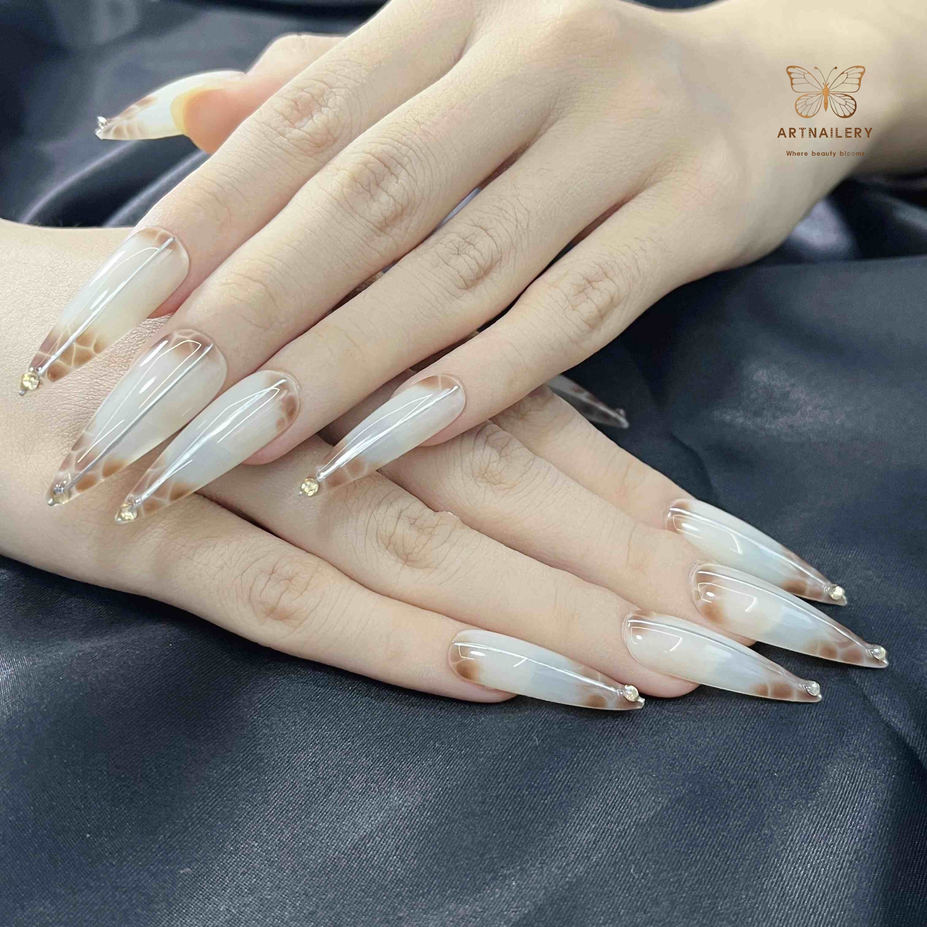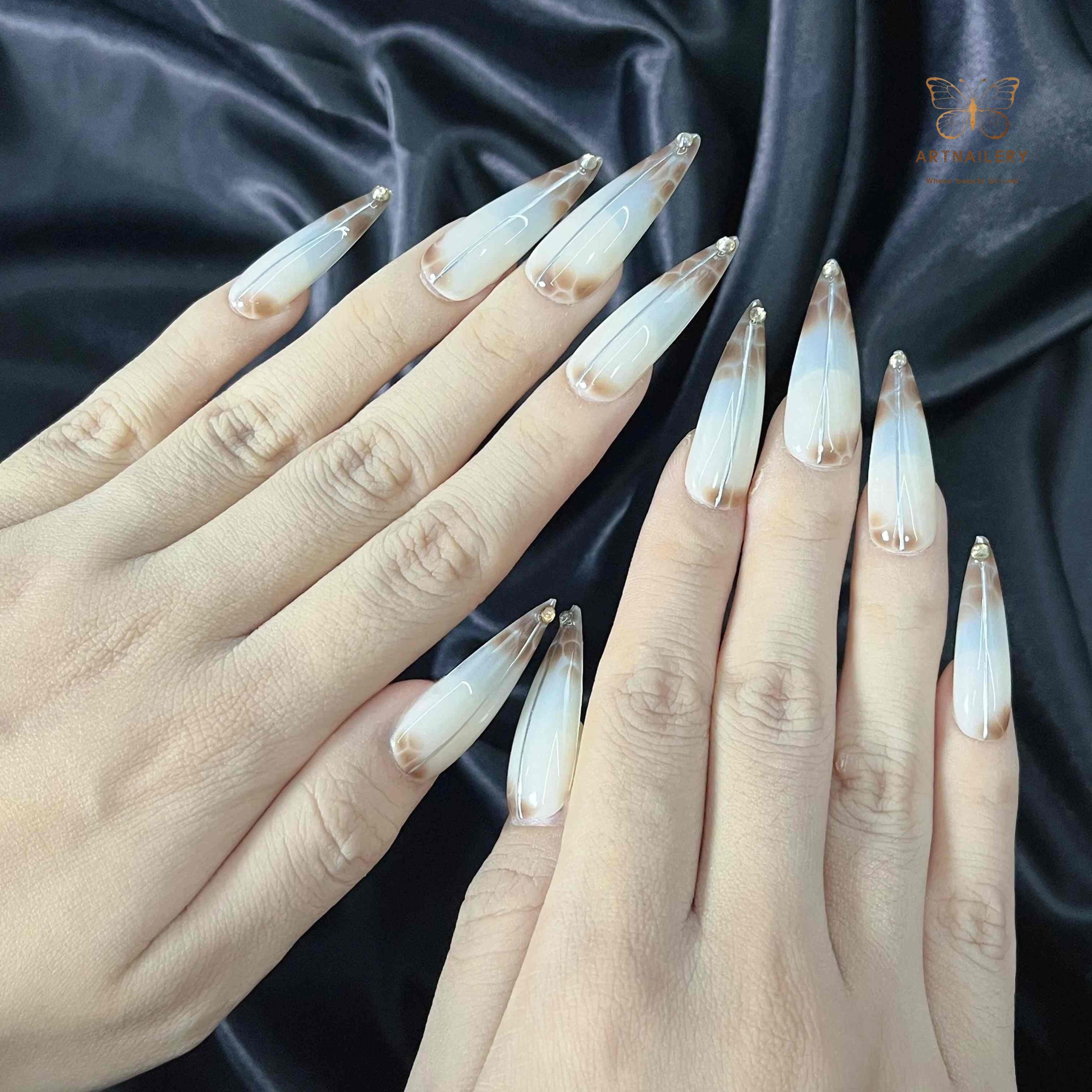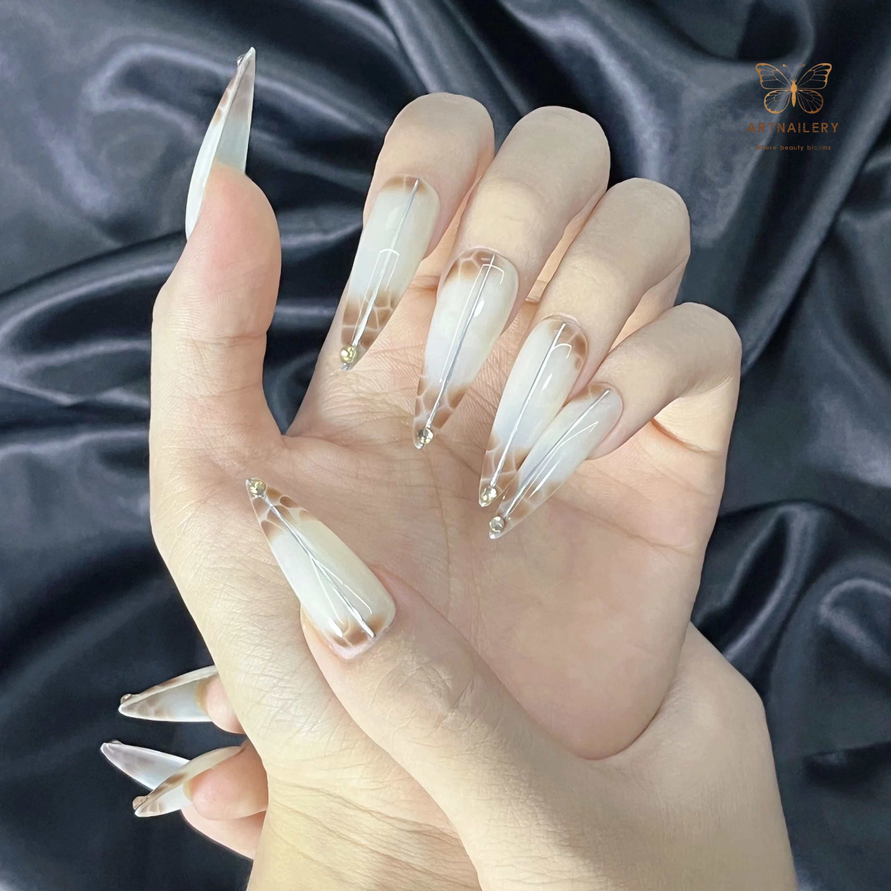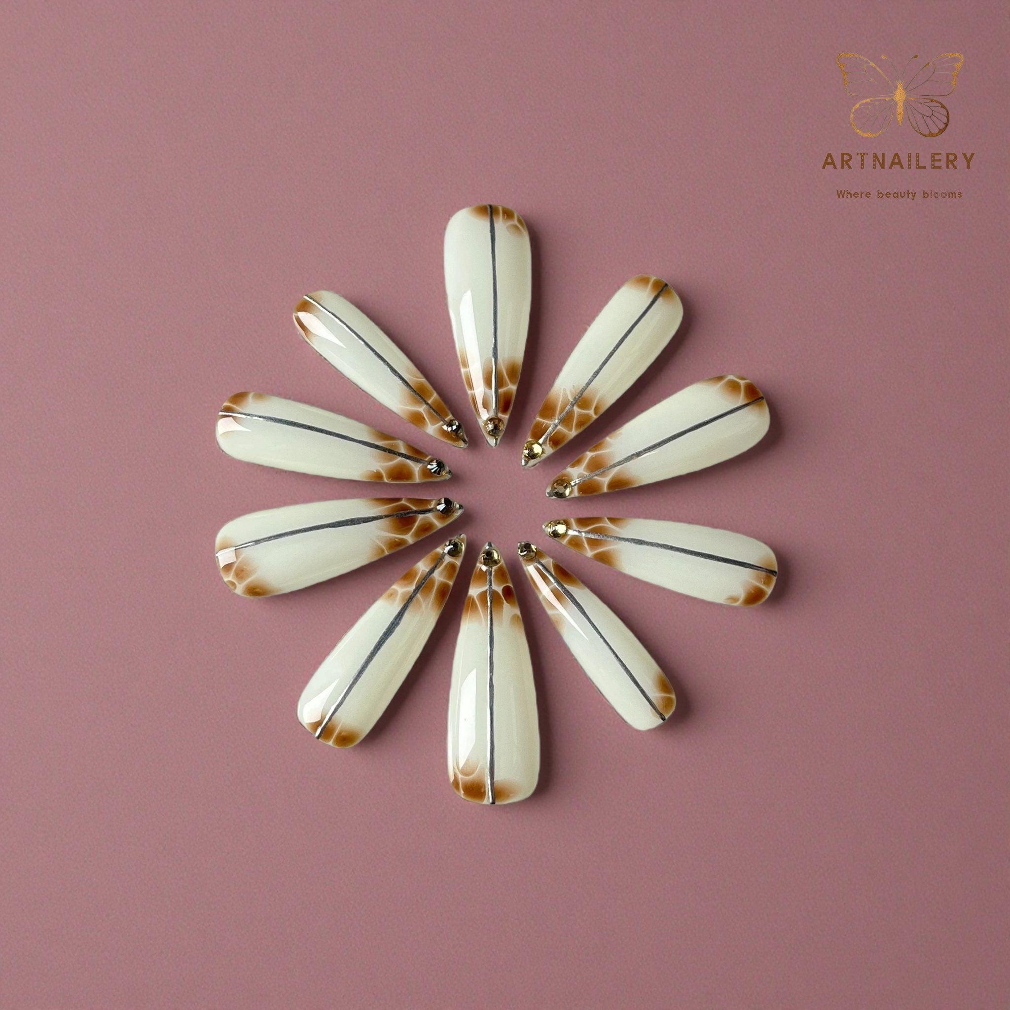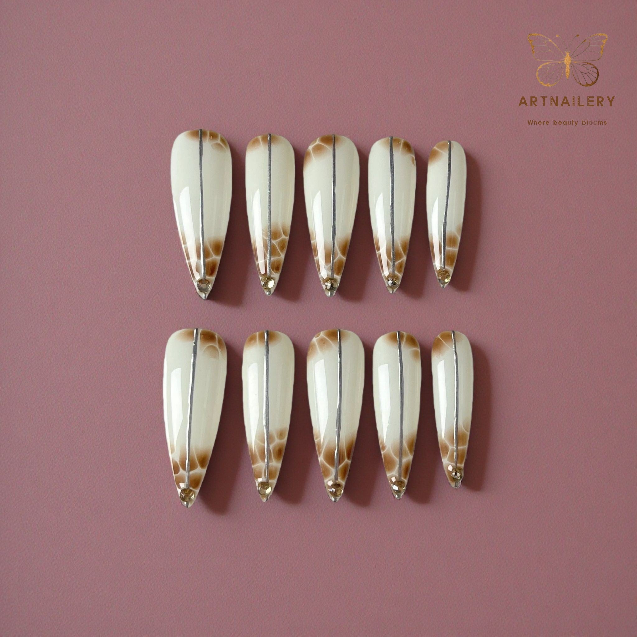 ✨ Soft tonal elegance with a sculpted edge. Desert Veil blends warm sand-brown gradients with a smooth ivory base, finished with a polished vertical line that elongates the fingers for...