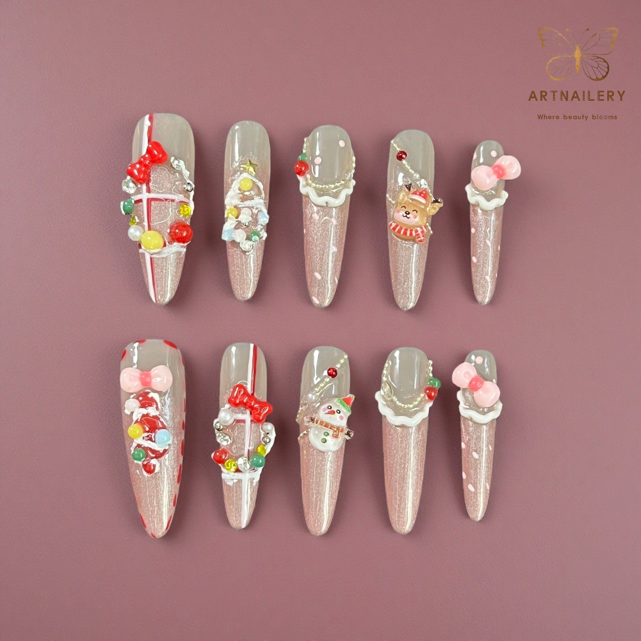 Artnailery · Frosted Merry | Holiday Glam Limited (10 pcs Handmade Press-On Nails)