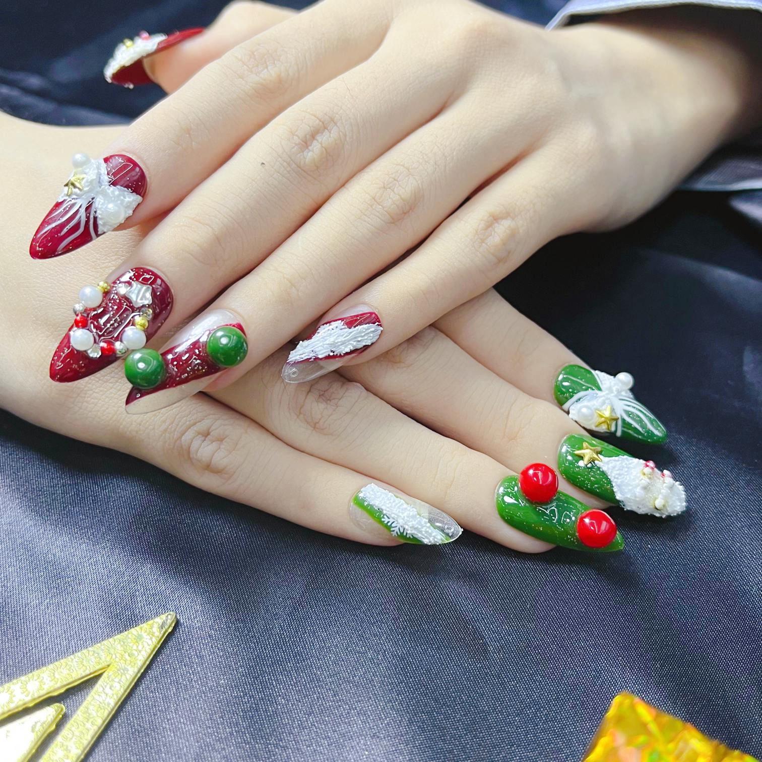Artnailery · Crimson Eve | Holiday Glam Limited (10 pcs Handmade Press-On Nails)