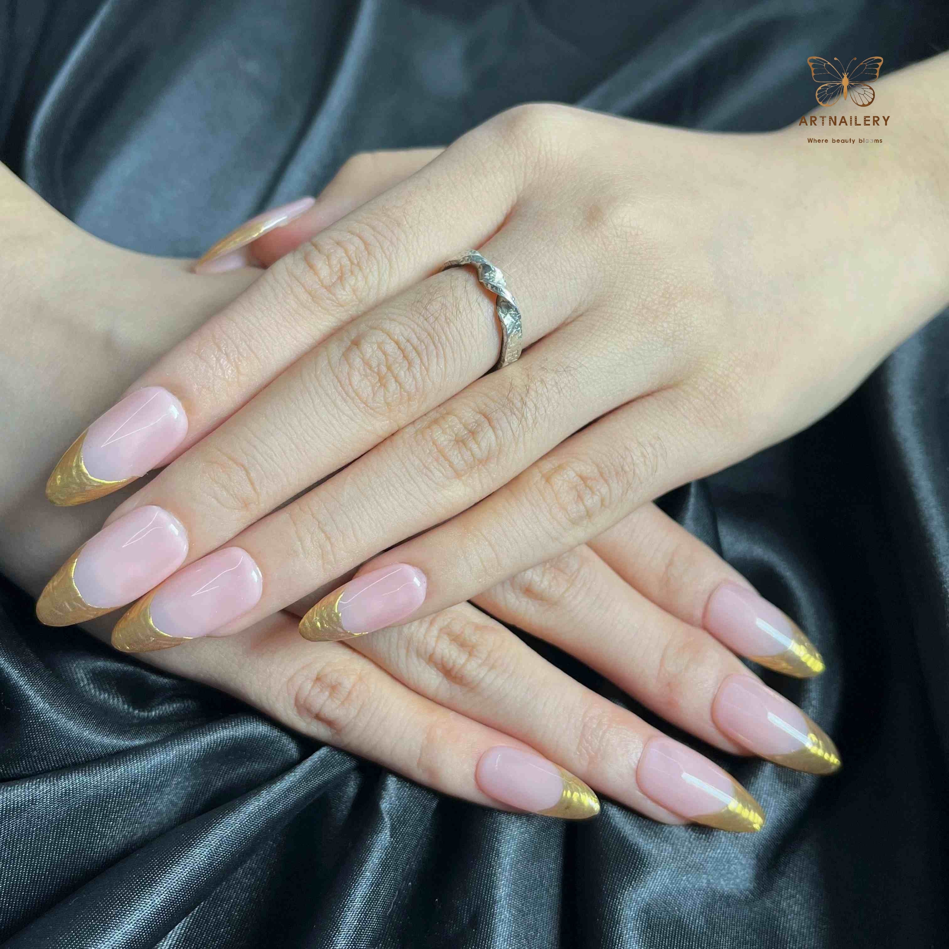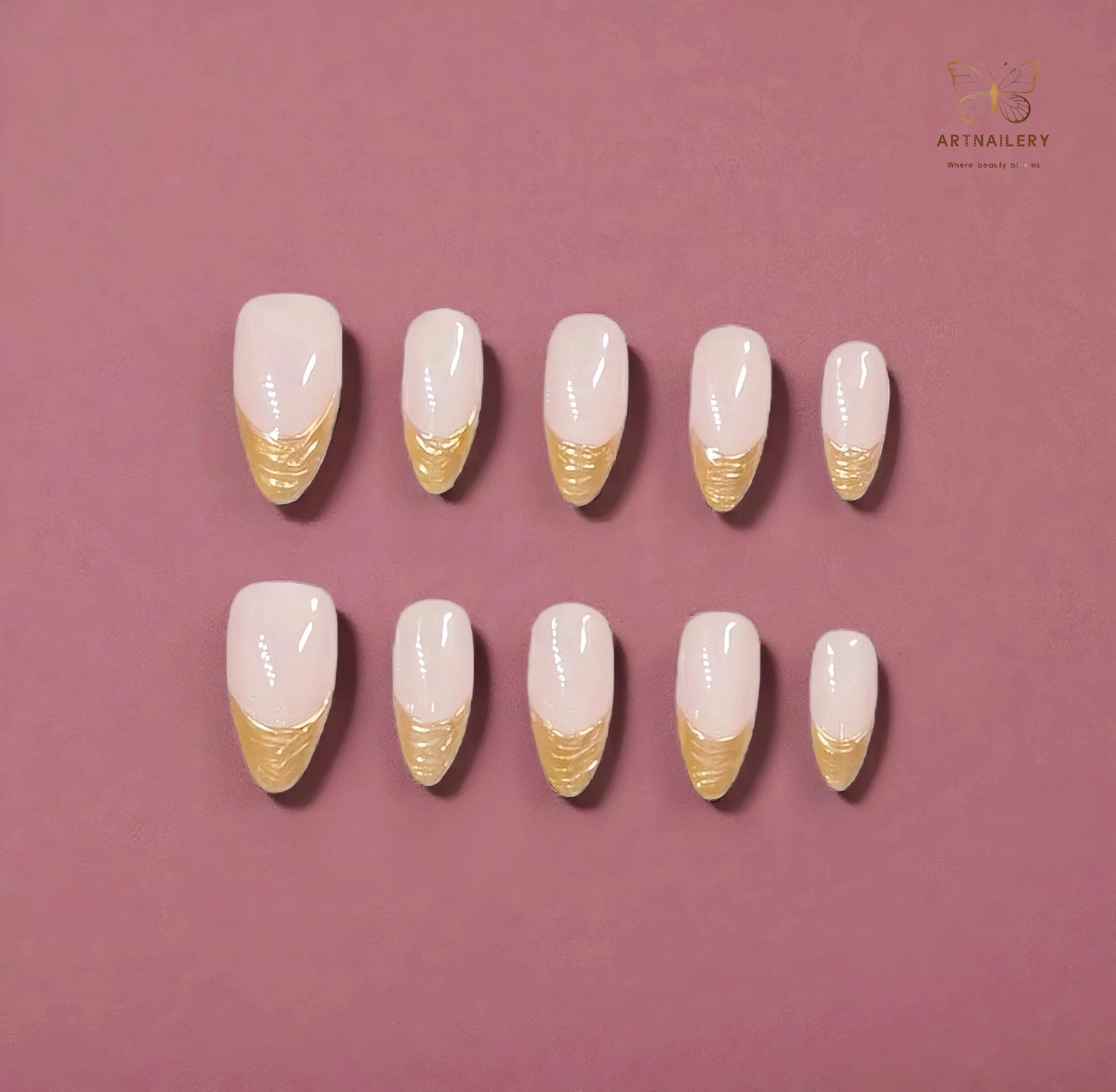 Picture a candlelit dinner, a crisp white shirt, or a simple black dress — and your nails doing the quiet work of making everything feel more put-together. Gilded Whisper transitions beautifully from daytime meetings to evening celebrations, especially under warm indoor lighting where the gold tips glow softly. It’s classic French energy, reimagined as modern, wearable luxury.