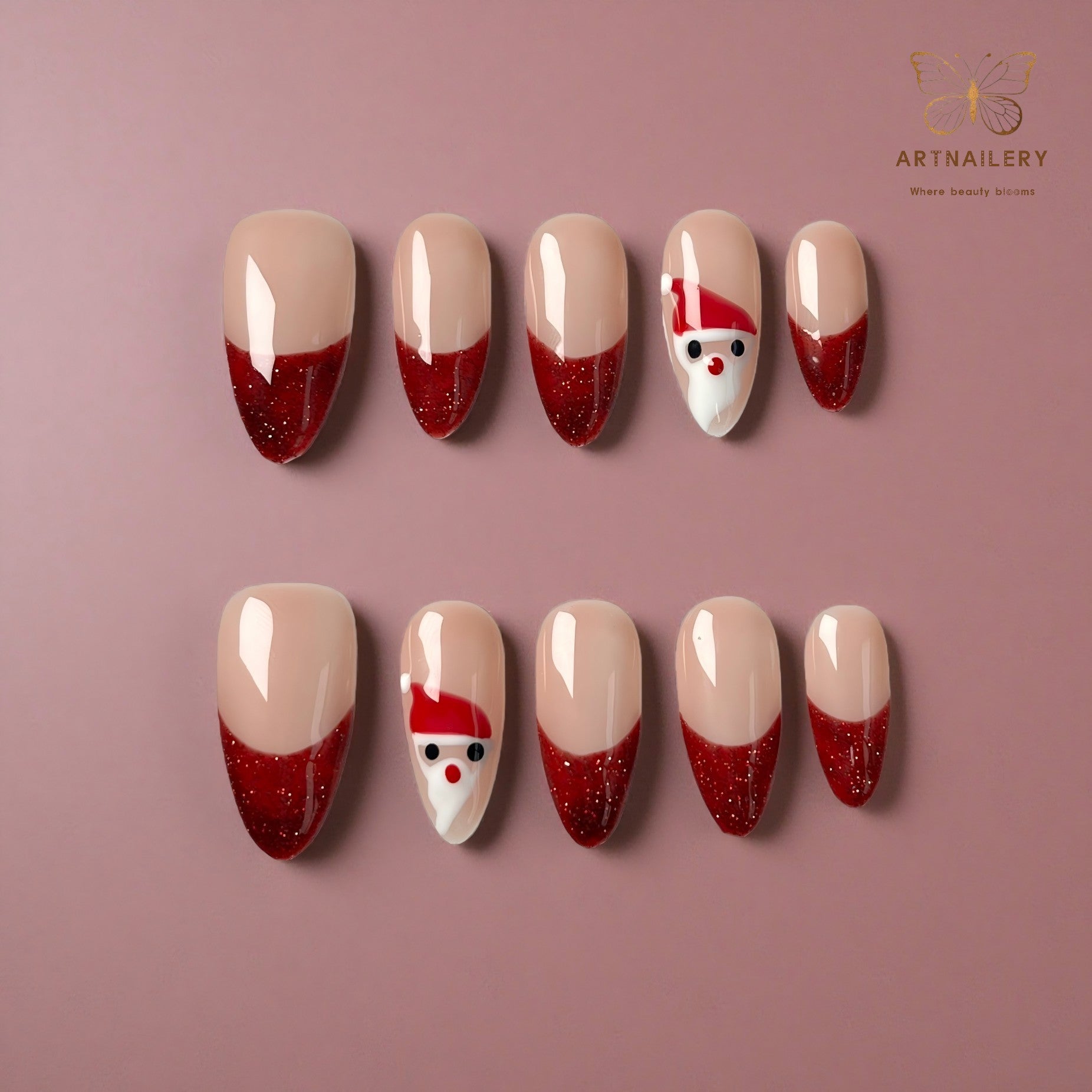 Artnailery · Santa Kiss | Holiday Glam Limited (10 pcs Handmade Press-On Nails