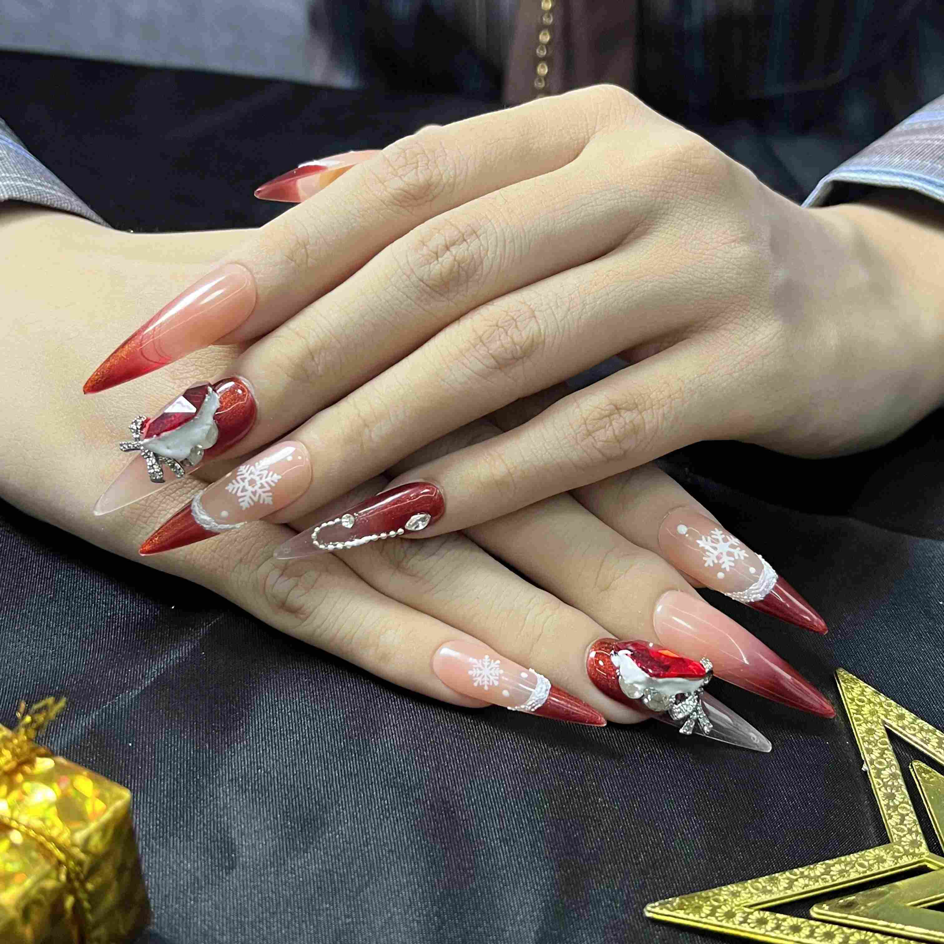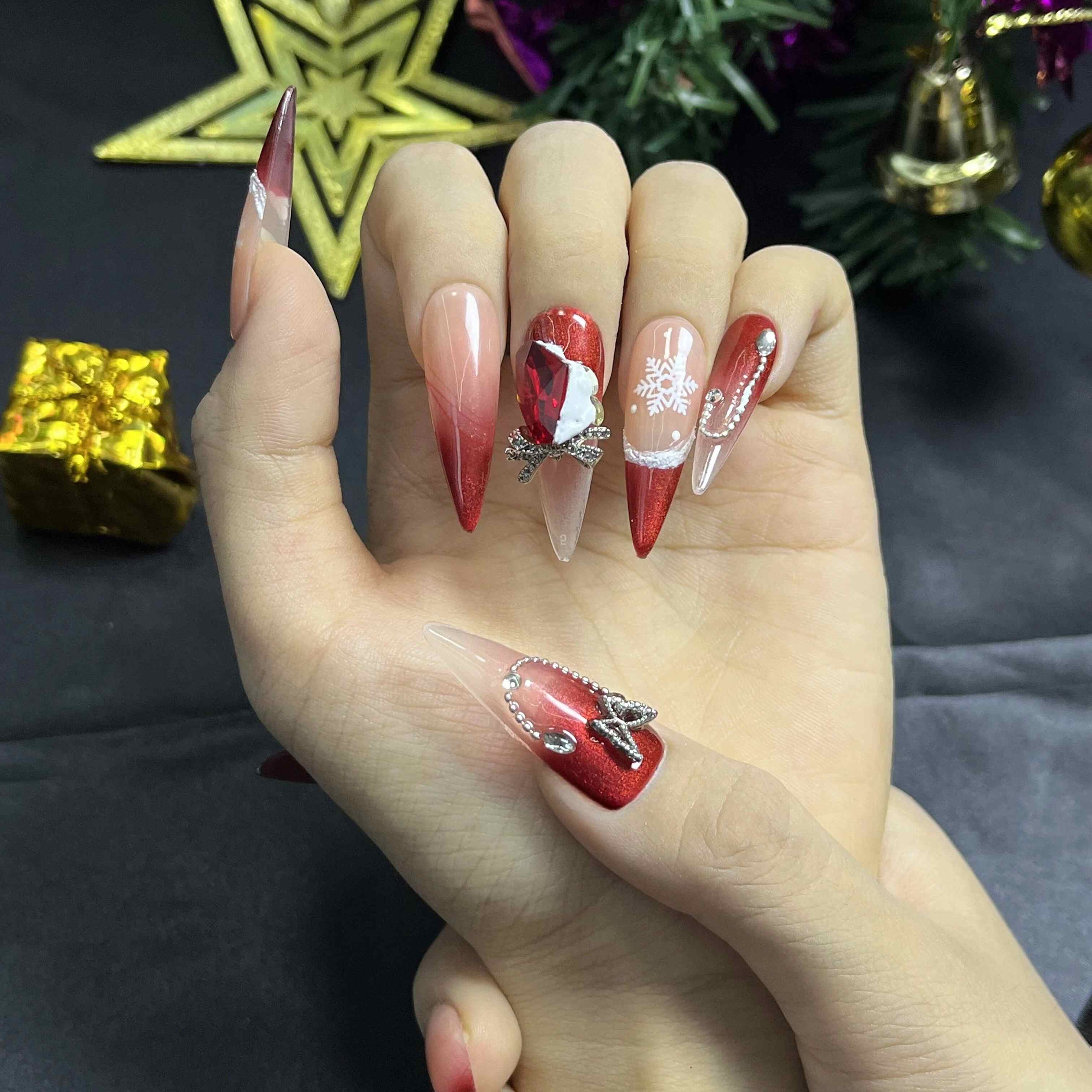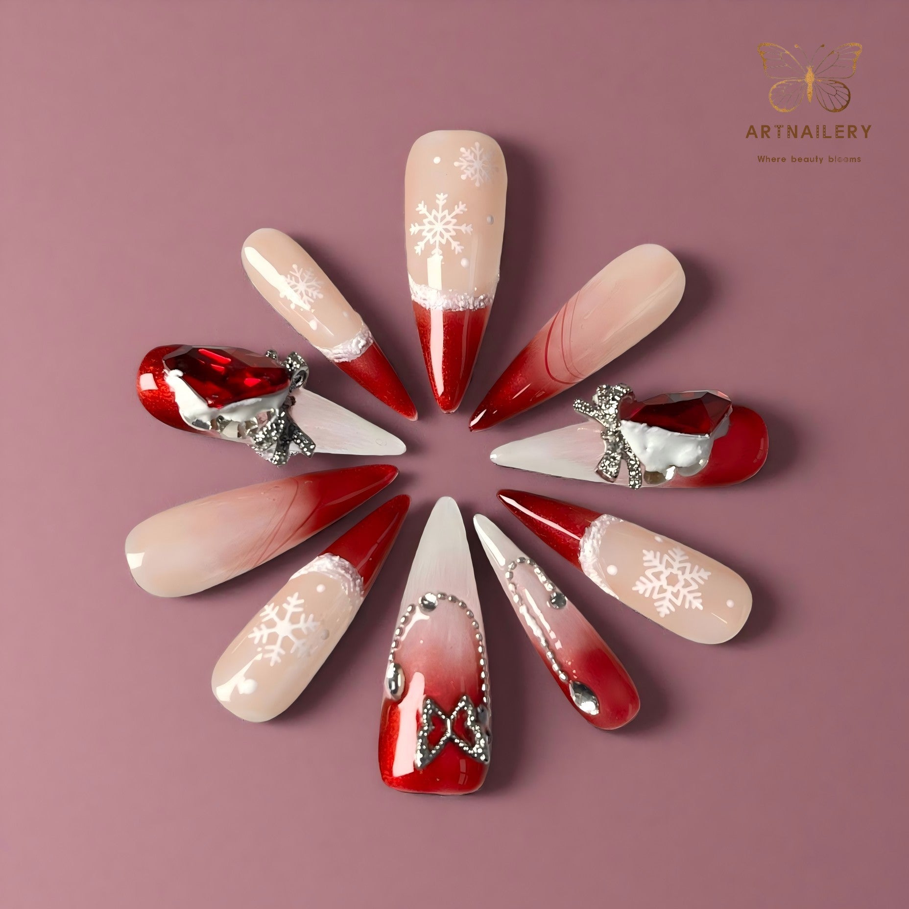 Artnailery · Scarlet Frost | Holiday Glam Limited (10 pcs Handmade Press-On Nails)